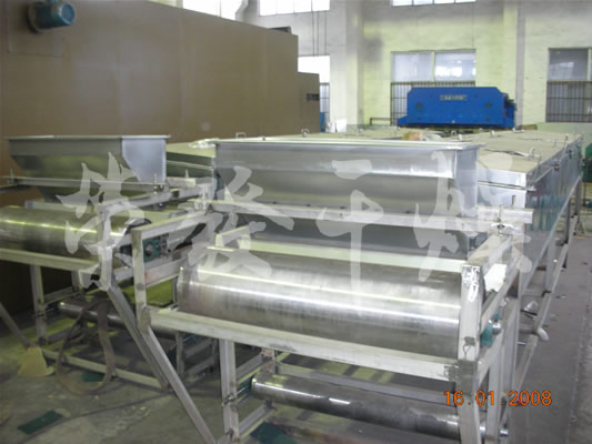 產(chǎn)品概述:潮濕物料經(jīng)由特制的鋪料機,將其均勻的攤鋪在勻速運行的不銹鋼網(wǎng)帶上,承重網(wǎng)帶在變頻調(diào)速電機的拖動下向前勻速移動,進入干燥室。干燥室由若干單元組成,每個單元熱風(fēng)獨立循環(huán)、溫度自由調(diào)節(jié),濕空氣由專門排濕風(fēng)機排出(排濕量由調(diào)節(jié)控制),空氣在循環(huán)風(fēng)機導(dǎo)向下經(jīng)換熱…